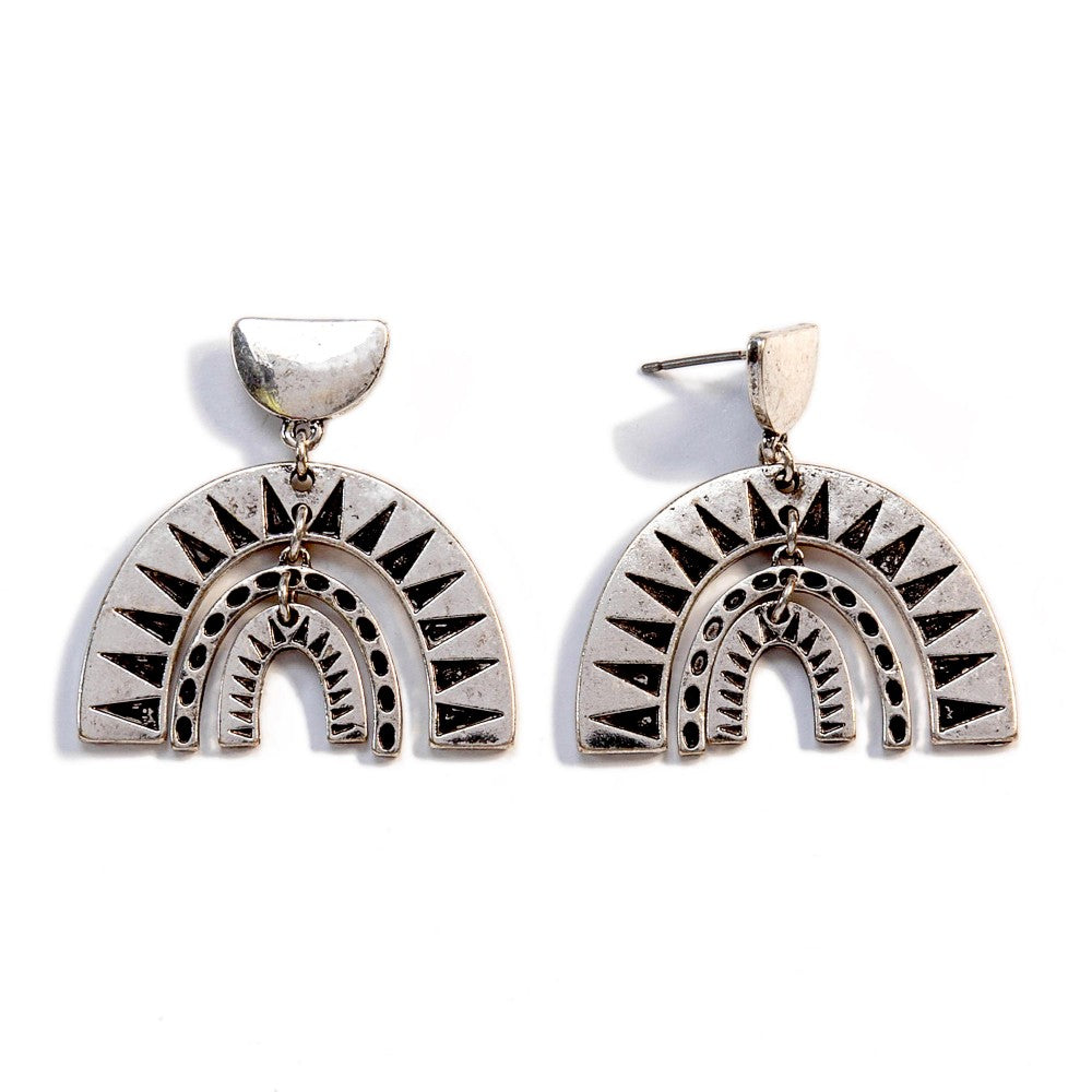 Add a touch of elegance to your outfit with our Ancient Arch Drop Earrings. Measuring approximately 1.25", these chic earrings will give you a sophisticated and timeless look. Elevate your style with these ancient-inspired statement pieces.