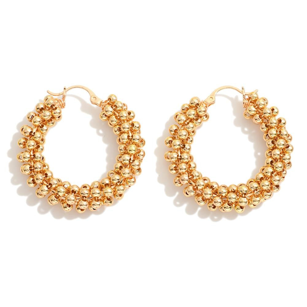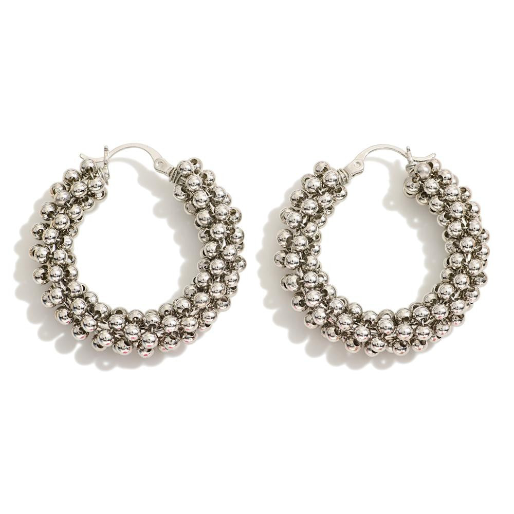 Add a touch of elegance and sparkle to your look with our Beaded Wrapped Hoop earrings. These metallic earrings feature a beaded wrap design and are approximately 1.5" in diameter. Perfect for any occasion, add a touch of sophistication and style to your outfit.