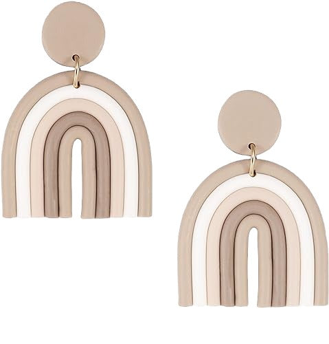 Update your accessory collection with Clay Rainbow Drops. These chic earrings are handmade and crafted from organic clay, giving them unique arched shapes. The rainbow painted details add a playful touch, making them a versatile addition to any outfit. Elevate your style with these statement earrings.