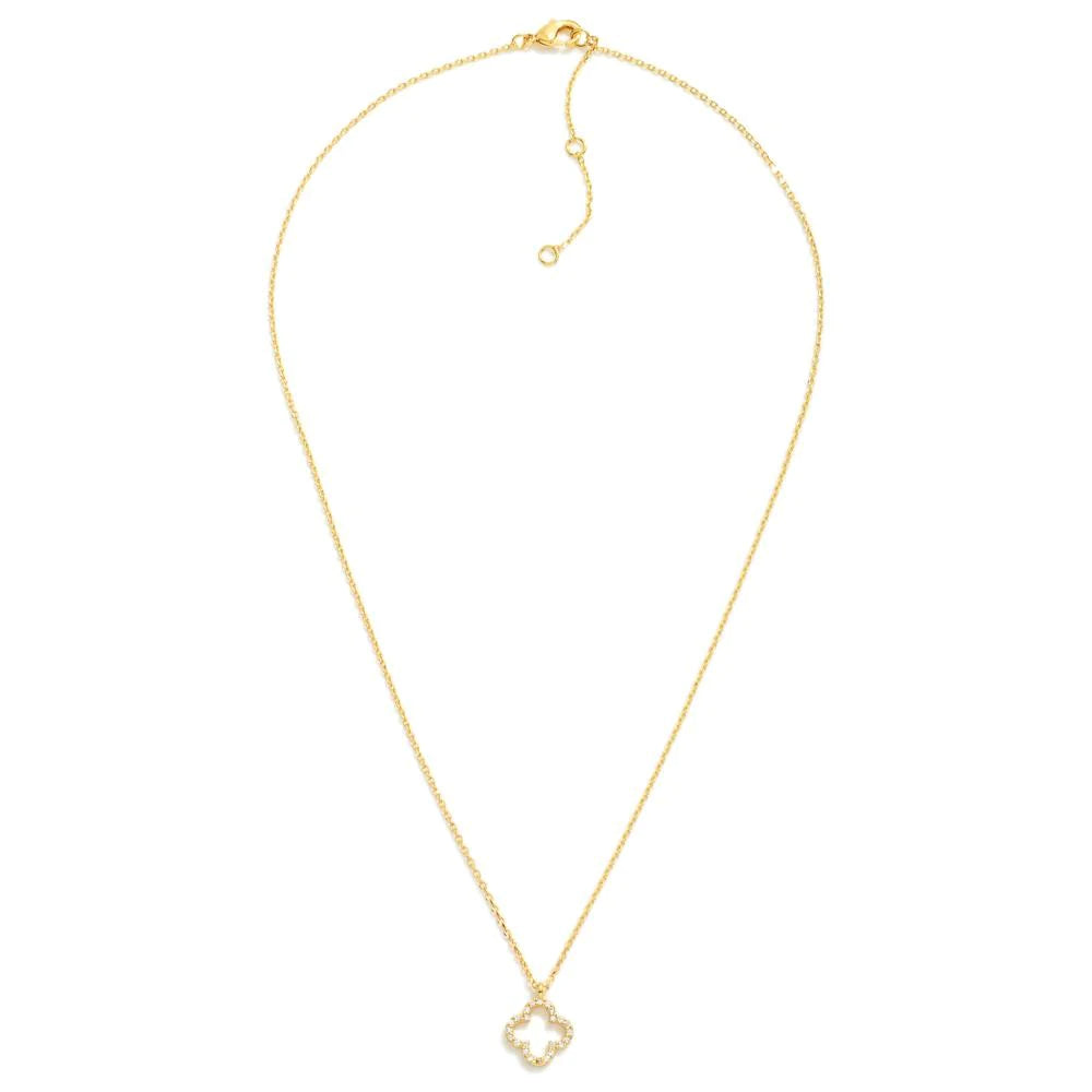 Add some luck and sparkle to your outfit with this Hollow Clover Pendant. The white gold dipped chain is delicately adorned with a rhinestone studded, hollow clover charm. With an adjustable length of 15"-17", it's the perfect addition to any jewelry collection.