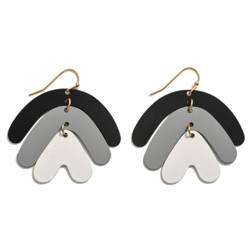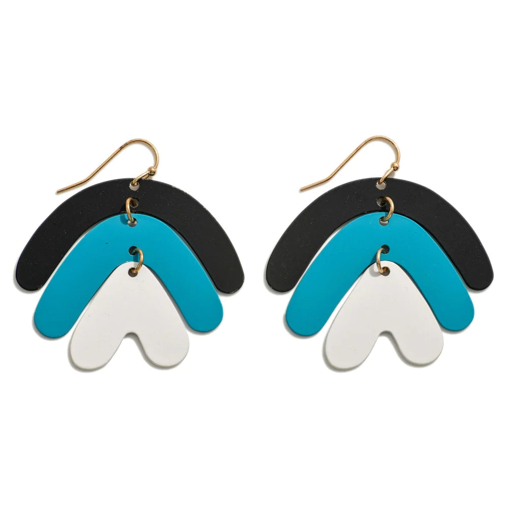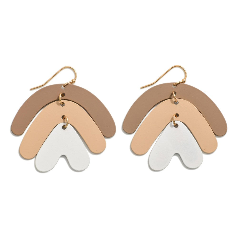 Add a touch of chic and retro style to your look with these Metal Stacked Arch earrings. The stacked metal design and arch shape create a unique and eye-catching piece. At approximately 2" in length, these earrings are the perfect way to make a statement.