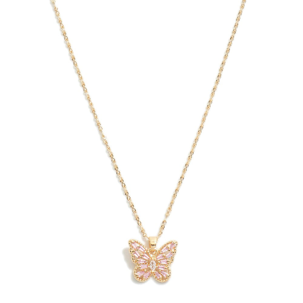 Don't let the delicate design fool you, the STONED Butterfly necklace is ready to make a statement. Featuring a dazzling rhinestone butterfly pendant on a 14" chain with a 3" extender, this necklace is the perfect mix of elegance and edge. Bring out your inner free spirit and elevate any outfit with this dainty accessory.