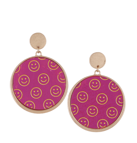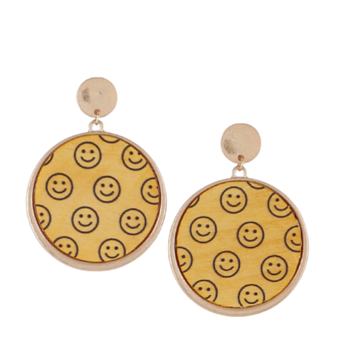 Add a touch of whimsy to any outfit with our Wooden Expression Drops. Crafted with a wooden circle and metal frame, these earrings feature playful smiley faces engraved on the wood. At approximately 1.6" in length, they are the perfect size for a fun and quirky statement. Get ready to spread some cheer!